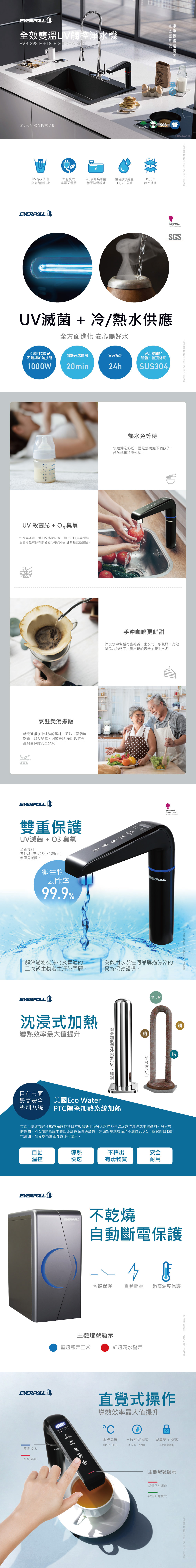 EVERPOLL廚下型雙溫UV觸控飲水機搭配雙道守護升級全效淨水器(EVB-298-E+DCP-3000)