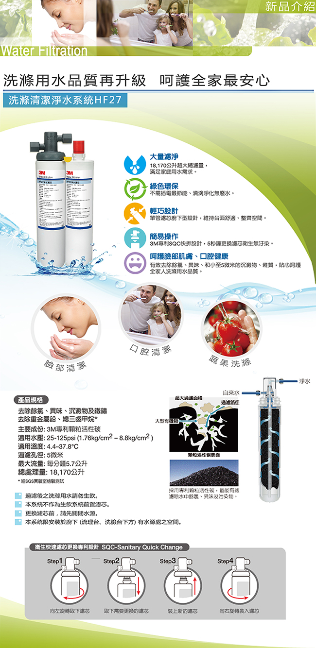 ★呵護臉部肌膚、口腔健康:清潔用水穿過3M專利活性碳